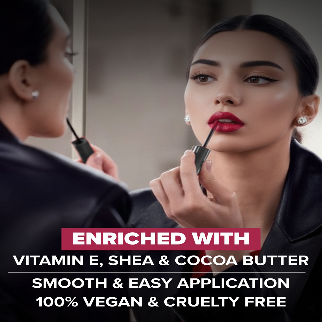 Girls Night Out (GNO) Cream Matte Liquid Lipstick offers a lightweight, creamy, 100% transfer-proof finish. Infused with Vitamin E, it moisturises, gives rich colour for up to 16 hours, conceals uneven lips, and comes in 6 shades for all skin tones.