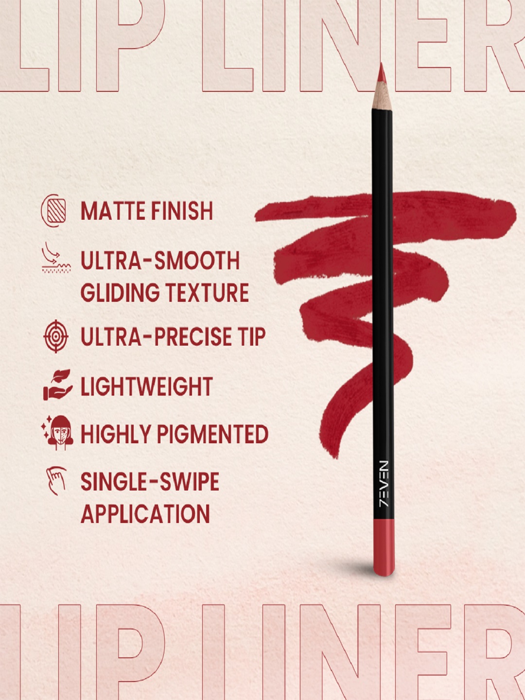 The 7EVEN Matte Lip Liner comes in 12 pigmented shades that suit lipstick colours and skin tones. Its creamy texture glides smoothly for defined lines. Infused with castor oil and glycerine, it prevents feathering, lasts long, and is perfect on-the-go.